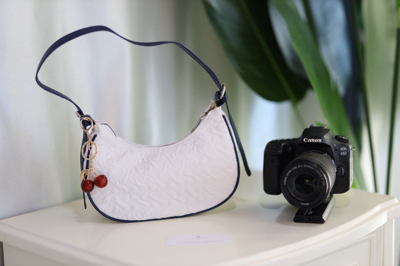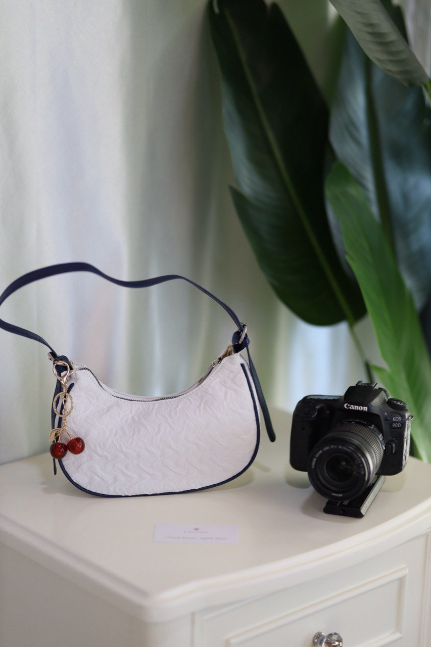 حقيبة كتف نسائية جديدة ذات سعة كبيرة – تصميم عصري بخطوط مجعدة من الخارج، جودة عالية ونايلون، بيضاء مع لمسات زرقاء، تشمل حزام قابل للفصل وإغلاق بسحاب للاستخدام اليومي، محفظة سفر آمنة | حقيبة يد أنيقة | قماش، حقيبة كروسبودي